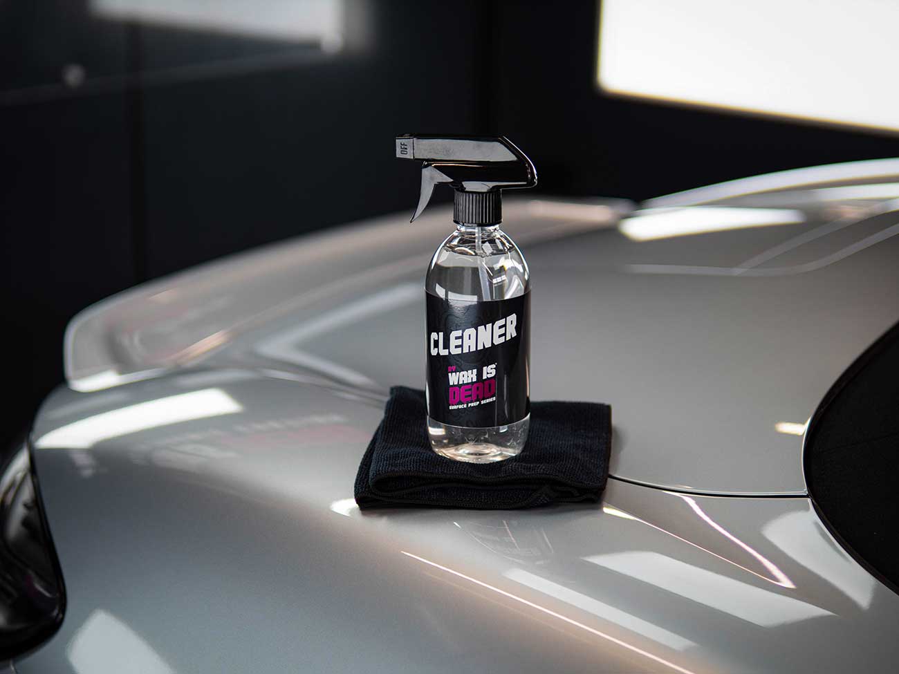 Wax is Dead® Cleaner is a spray-on surface preparation spray that removes polish, waxes, sealants, oils and grease from the surface before applying a ceramic coating.