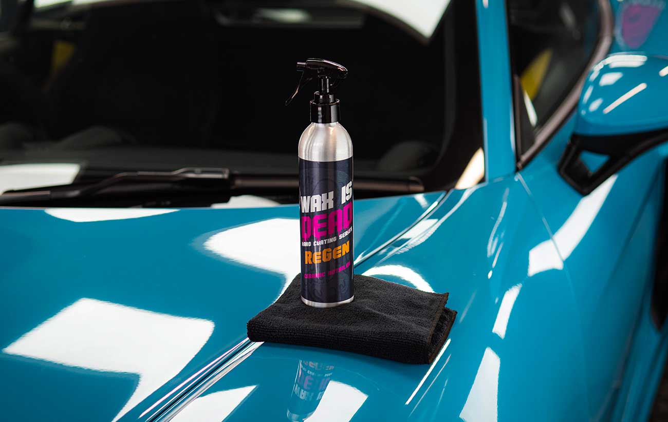 Wax is Dead® Regen is a sprayable ceramic detailer, that offers up to 3 months of hydrophobic protection against the most common elements vehicles face such as bugs, road salts, bird droppings, dirt, grime, and oils.