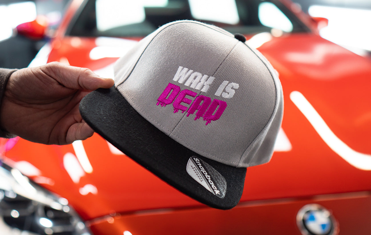 Wax is Dead Snap Back Cap Colour – Grey with Black Peak Logo Embroidered Material: 100% acrylic twill Flat peak style Snap-back style adjuster *Images are for Illustration purposes only! – Colours and finish will vary*
