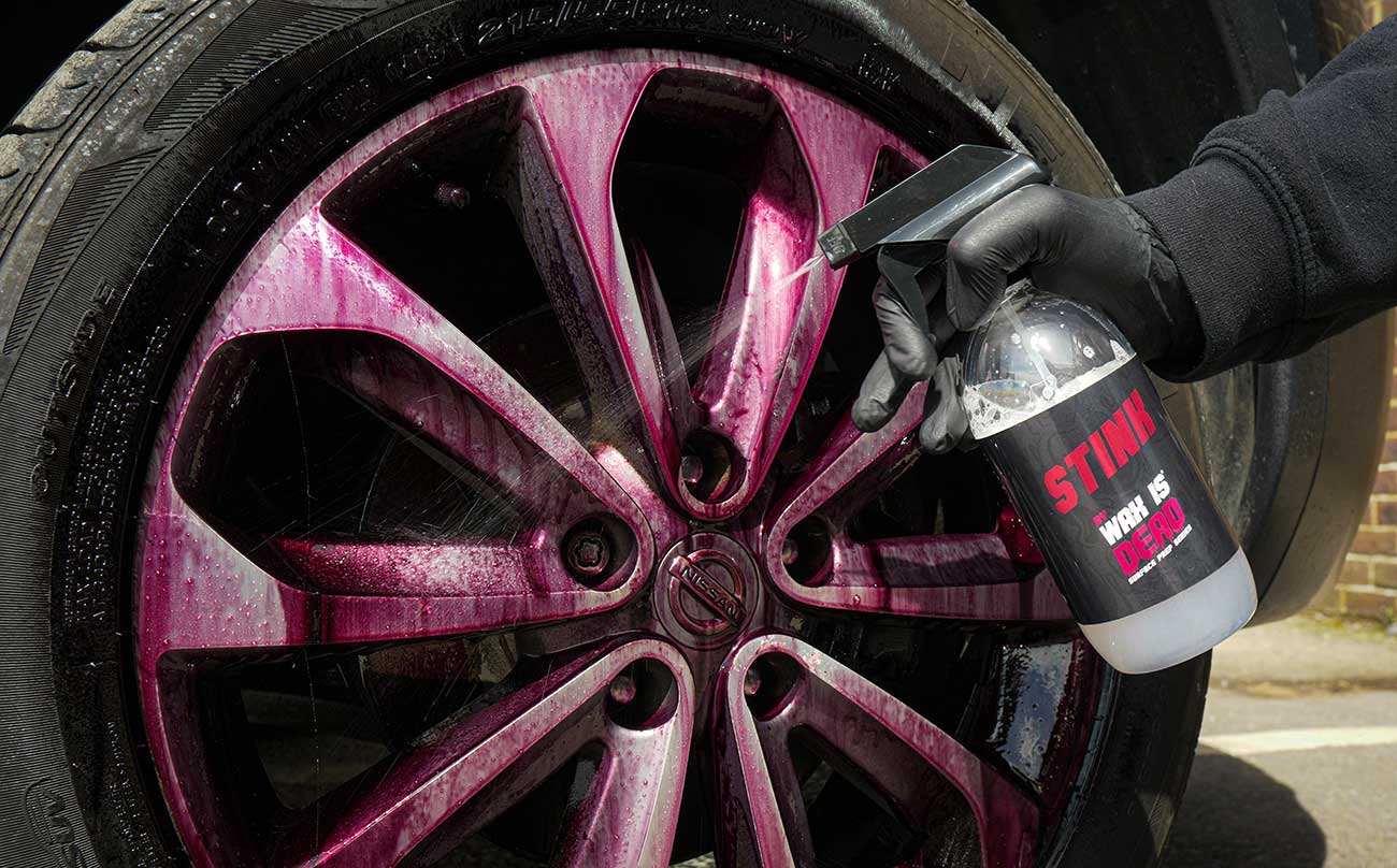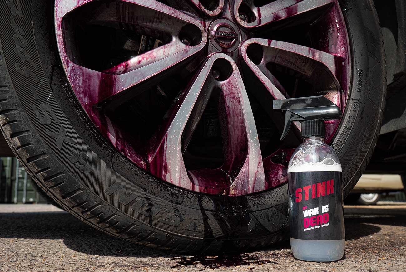 Wax is Dead® Stink is a touchless Iron Fallout Remover for wheels and exterior surfaces, providing safe and effective removal of brake dust and iron particles. Stink’s Advanced, highly concentrated, pH-neutral formula is safe to use on ceramic-coated surfaces and most exterior surfaces, including paintwork, glass, plastic, and rubber.